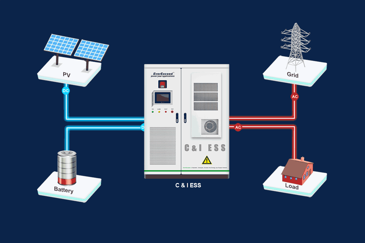 EverExceed, il sistema di accumulo di energia all-in-one EverPower Industrial & Commercial ESS, integra in modo ottimale PCS, batterie LiFePO4, BMS, PCS, EMS, sistema antincendio e sistema di dissipazione del calore all'interno dell'armadio. Si tratta di una soluzione di alimentazione di backup ad alta potenza per clienti commerciali/industriali collegati alla rete. Questo sistema di accumulo di energia ad alta tensione offre la massima flessibilità sia per installazioni montate su rack che in armadi. Questo sistema è molto più "sicuro, intelligente e semplice" e adatto a risolvere i problemi di alimentazione nelle vostre sottostazioni, aree esterne, microreti + accumulo di energia, piccole fabbriche, centri commerciali, stazioni di ricarica con accumulo solare, ecc.