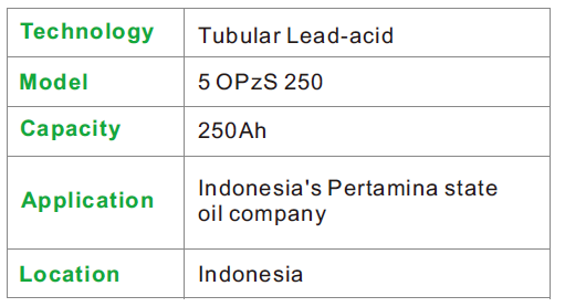 EverExceed ha consegnato con successo i sistemi di batterie OPzS a Pertamina per i progetti petroliferi nazionali indonesiani. Con l'intenzione di sostituire altri due banchi, Pertamina sta accelerando il passaggio alle soluzioni di accumulo energetico di EverExceed, più sicure, durevoli ed efficienti. Realizzate con tecnologia a piastre tubolari, le batterie OPzS di EverExceed richiedono una manutenzione minima, offrono una lunga durata e prestazioni affidabili anche in condizioni di alta temperatura o di rete instabile.