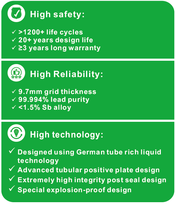 | Tecnologia | Batteria tubolare al piombo + inverter + modulo fotovoltaico |