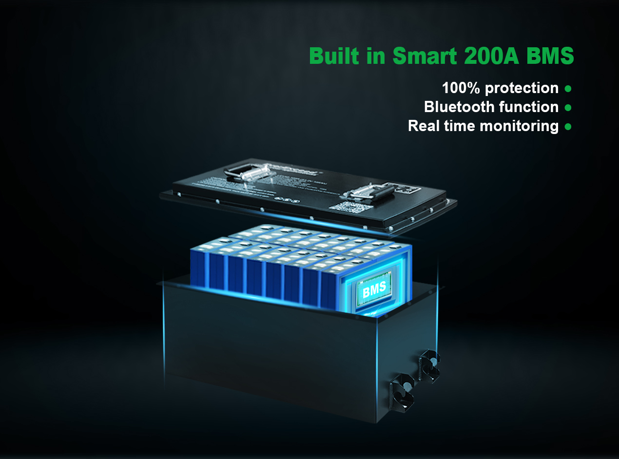 Un affidabile sistema di gestione della batteria (BMS) integrato garantisce un funzionamento sicuro per tutta la durata di vita. Il BMS è dotato di una perfetta protezione automatica contro sovratensione, sovracorrente, scarica eccessiva e sovratemperatura.