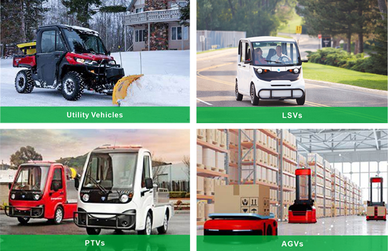 Golf cart, veicoli utilitari, veicoli a bassa velocità (LSV), veicoli per il trasporto personale (PTV), veicoli a guida automatica (AGV)