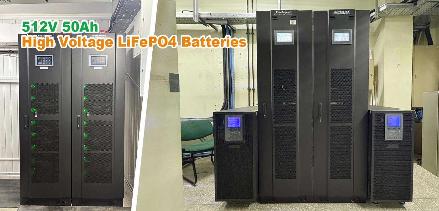 Batterie LiFePO4 ad alta tensione 512V 50Ah personalizzate EverExceed per il retrofit di un data center. Queste batterie LiFePO4, caratterizzate da elevata sicurezza ed eccellenti prestazioni di scarica, sostituiscono perfettamente le batterie al piombo originali e garantiscono una soluzione di backup affidabile per il data center.