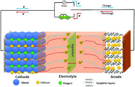 Fig: Schema del meccanismo di funzionamento della batteria al litio-ferro-fosfato