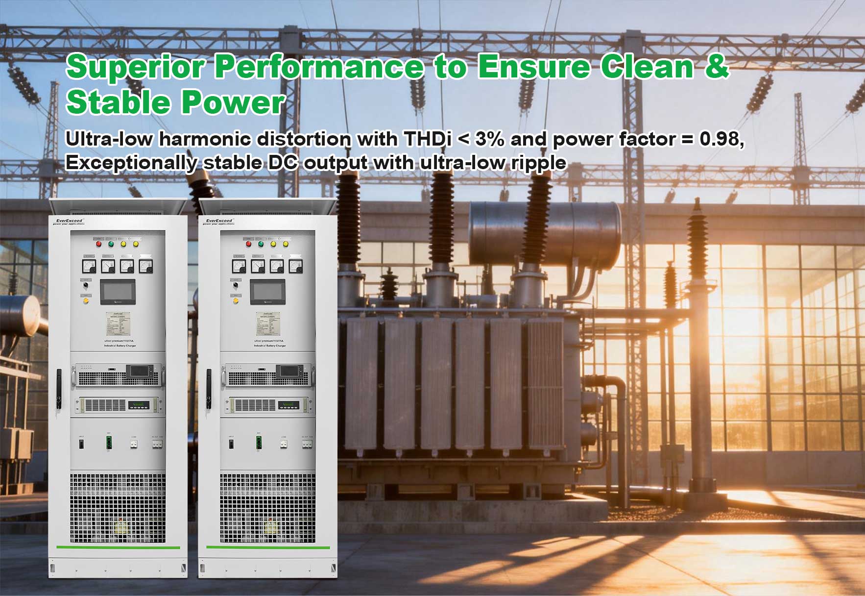 Il caricabatterie uXcel Premium è progettato per far fronte a distorsioni armoniche elevate, penali di rete, prestazioni di ricarica instabili e costi crescenti di energia e manutenzione, tipici dei moderni ambienti industriali e delle centrali elettriche.