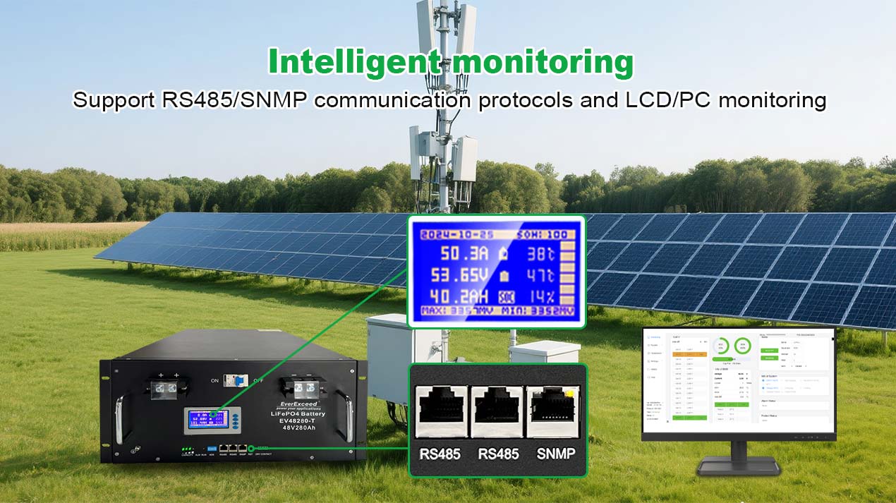 Questo sistema è dotato di un BMS intelligente integrato per una protezione al 100%, supporta Modbus tramite RS485 e consente il monitoraggio remoto SNMP/GPRS, garantendo una supervisione in tempo reale 24 ore su 24.