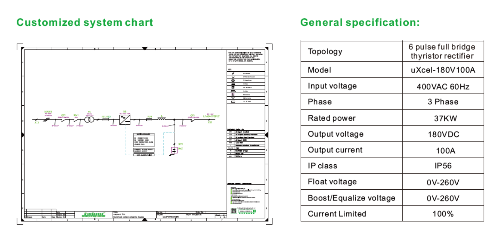 EverExceed è un produttore leader a livello mondiale di caricabatterie industriali personalizzati. Abbiamo sviluppato una soluzione su misura per questo progetto. Sfruttando il suo team di ingegneri esperti e la sua competenza nei requisiti del clima desertico, EverExceed ha personalizzato il caricabatterie industriale uXcel 180V100A per soddisfare esigenze specifiche.
